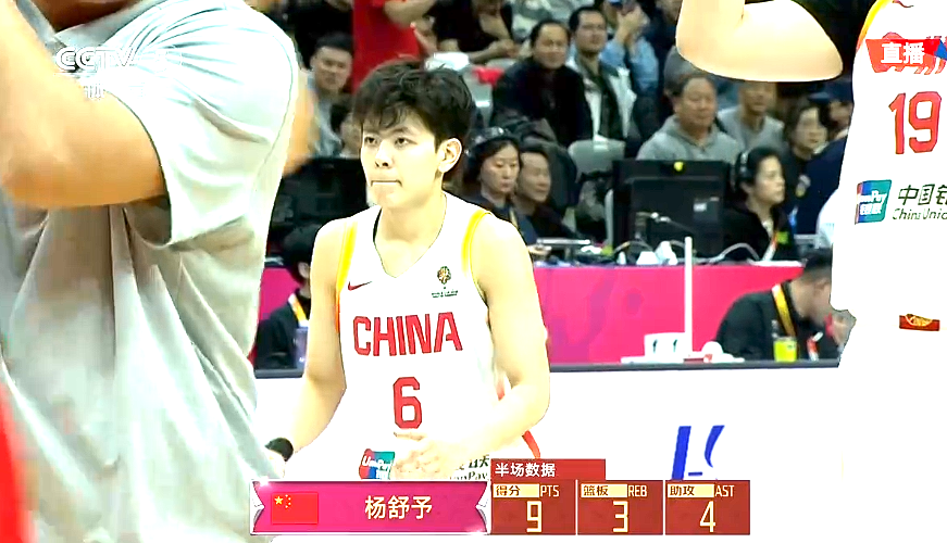 半场打完,中国女篮,杨舒予8投4中,3分5中1,得到9分3板4助;韩旭8中4,得到9分1板;罗欣棫7投3中,3分6助攻2,得到8分5板;李月汝3中1,罚球2中2,得到4分5板1助,王佳琦2分2板3助,张子宇2分1板,张茹1分,唐子婷2板,王思雨1板2助,陈玉婕1板1助,陈明伶2助。马里女篮,达布10分3板1助、西塞6分3板。